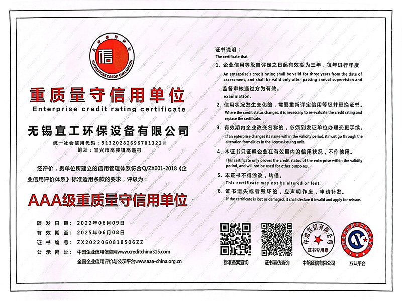 • 環保設備制造維修企業服務能力等級證書
